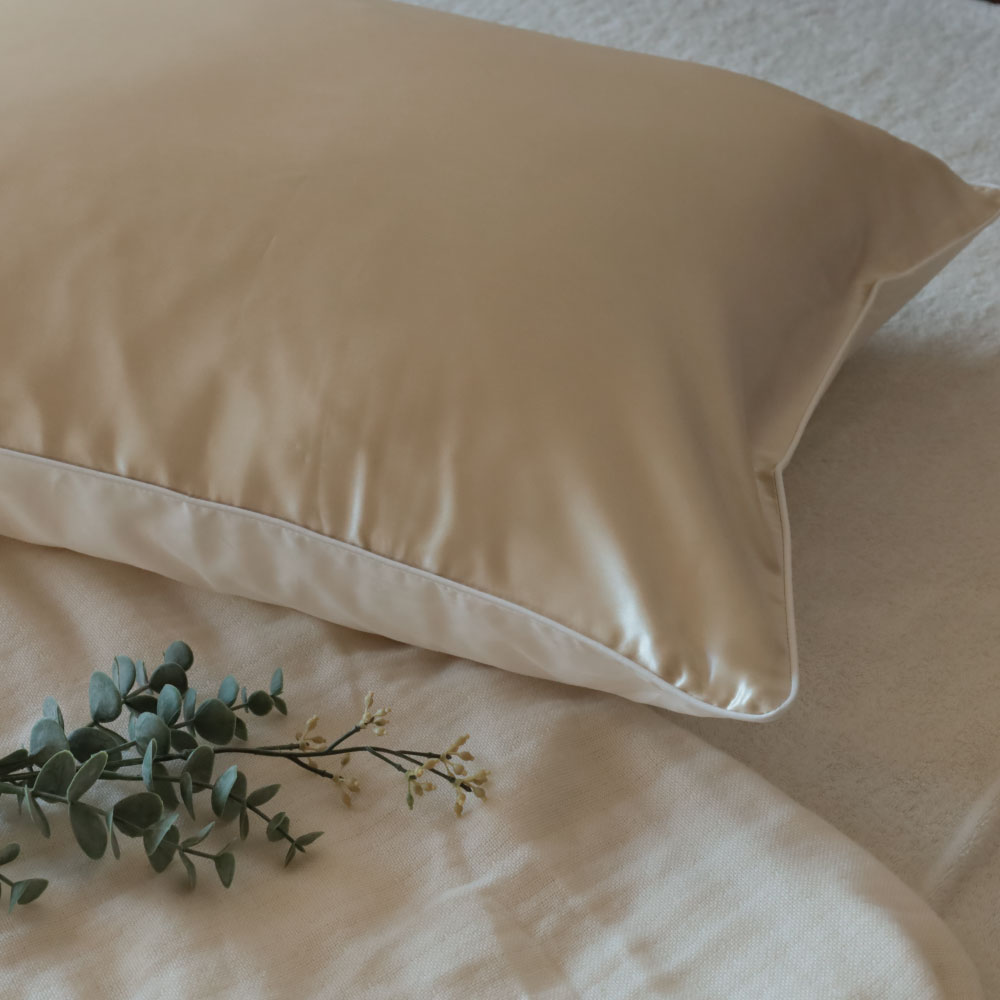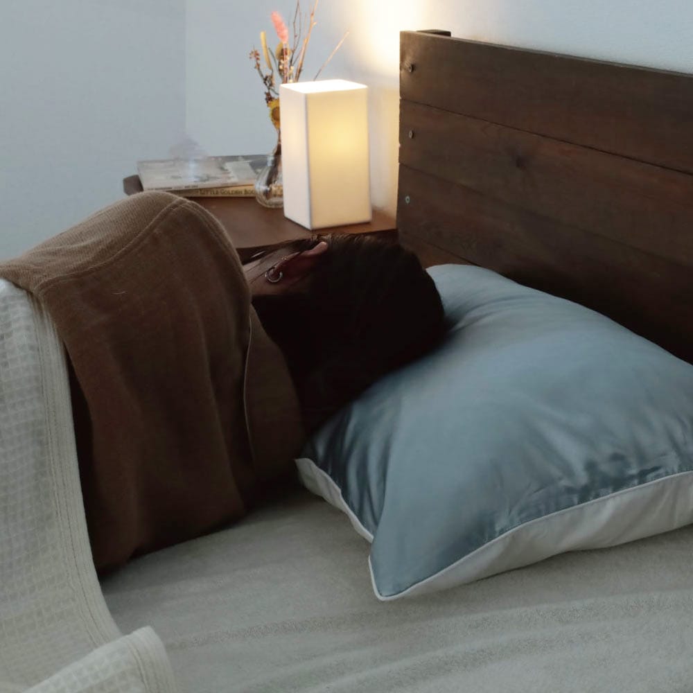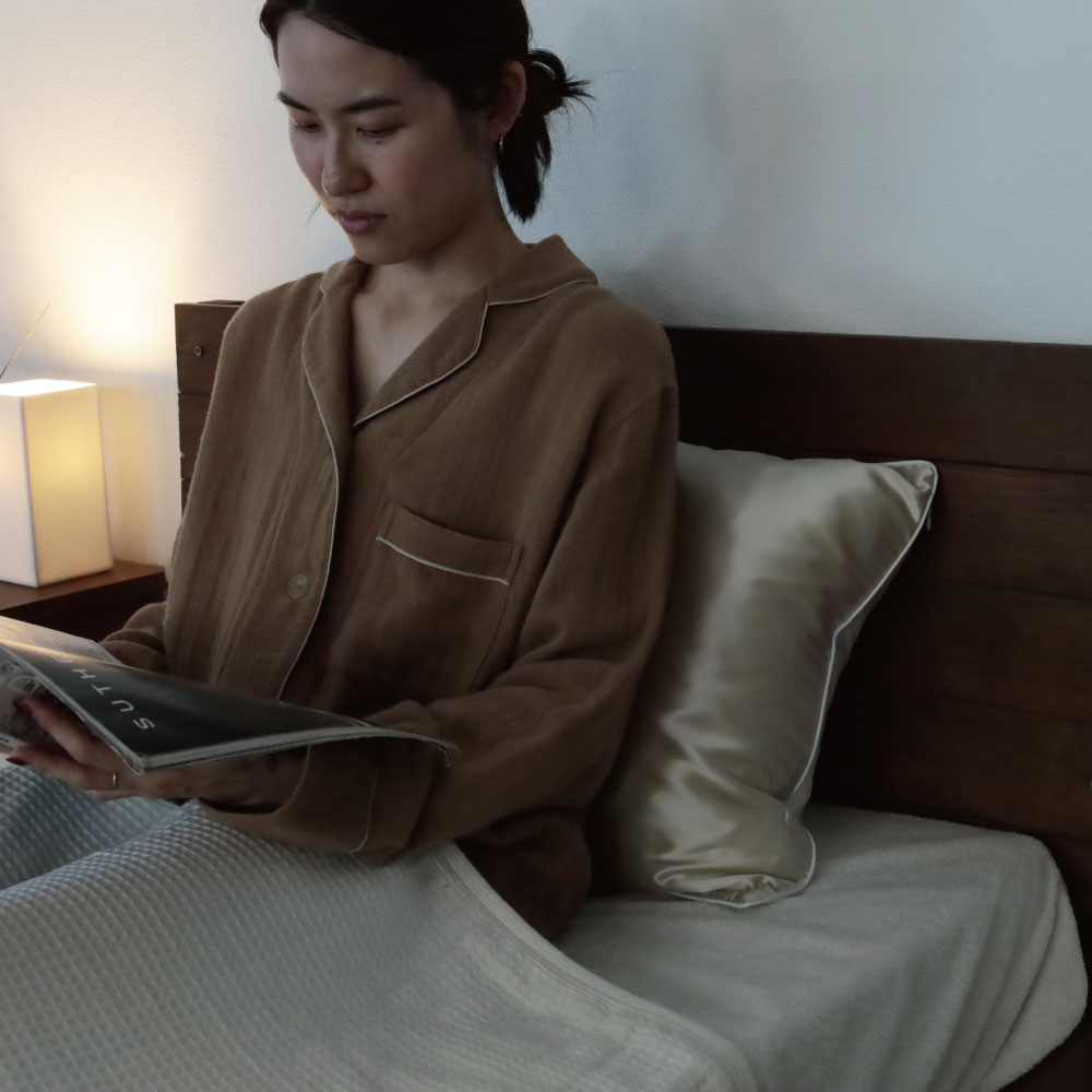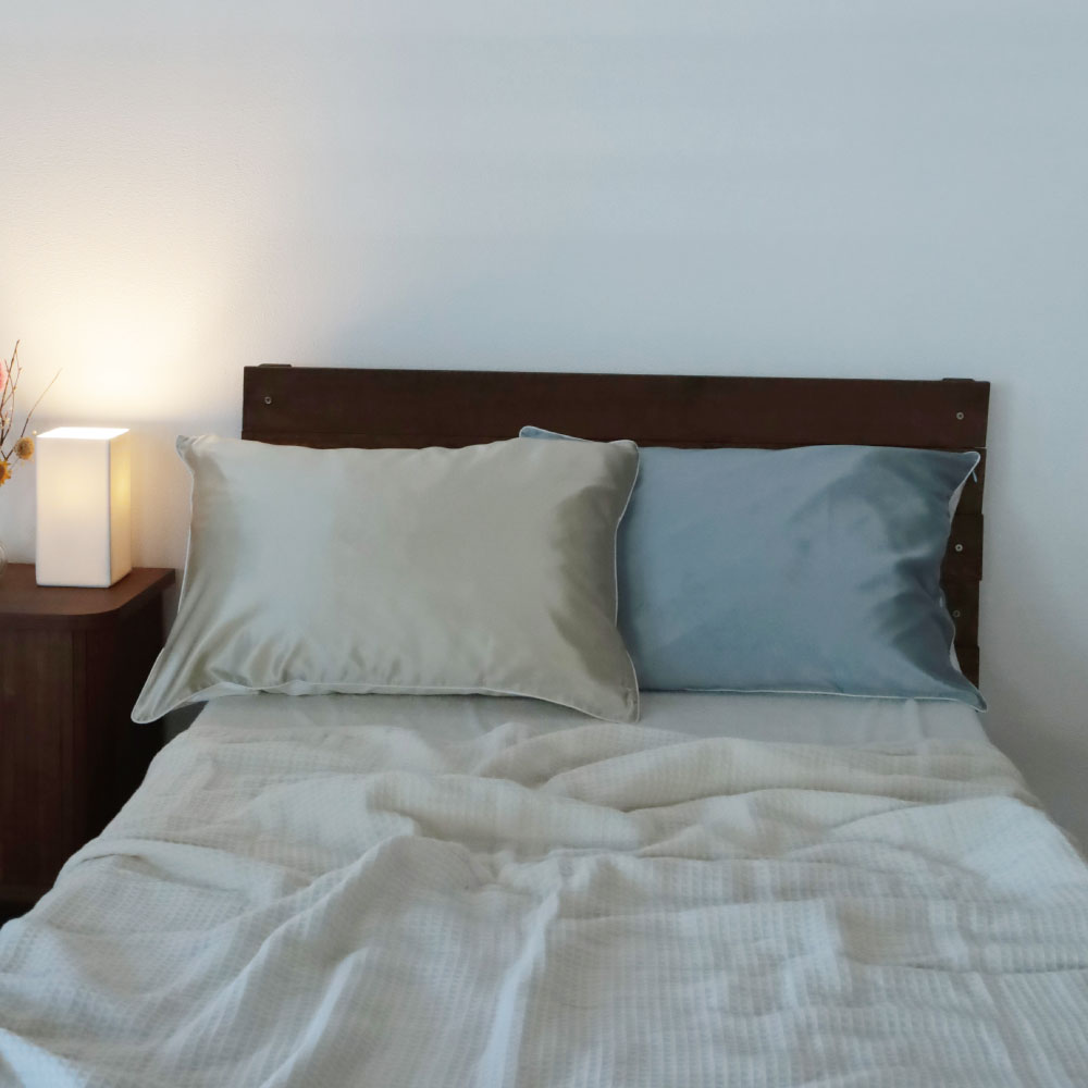 シルク100%の枕カバーは、使うほどに肌に馴染み、ぐっすりと深い眠りに誘導してくれる。